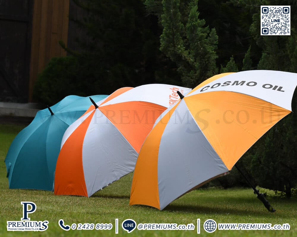 รับผลิตร่มกอล์ฟ รับทำร่มกอล์ฟ ร่มยาว ถือเป็นอีกหนึ่งของพรีเมี่ยมที่มีความโดดเด่นและสะท้อนภาพลักษณ์ของความหรูหรา แข็งแรง และดูมืออาชีพ ทำให้เป็นที่นิยมในการสั่งทำและสั่งผลิตในกลุ่มธุรกิจ เนื่องจากร่มกอล์ฟมีพื้นที่สกรีนโลโก้ที่กว้าง สามารถพิมพ์ลายบนผ้าร่มกอล์ฟได้ ร่มกอล์ฟ สกรีนโลโก้เหมาะสำหรับแบรนด์หรือองค์กรที่ต้องการมอบของขวัญให้ลูกค้า VIP หรือคู่ค้า เพื่อสร้างการจดจำและเอกลักษณ์ขององค์กรได้อย่างชัดเจน