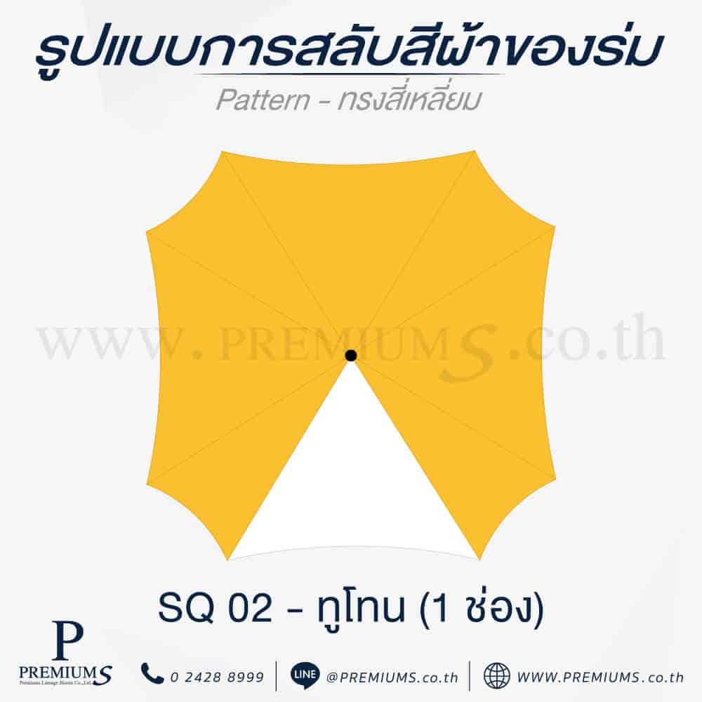 ร่มสีเหลือง ร่มตอนเดียวสีเหลืองเป็นสีที่หลายหน่วยงานราชการนิยมเลือกใช้ เช่น มูลนิธิ โรงพยาบาล สถาบันการศึกษา เนื่องจากให้ความรู้สึกสดใส เป็นมิตร สะดุดตา และสื่อถึงพลังเชิงบวก จึงเหมาะกับหน่วยงานที่ต้องการสร้างภาพลักษณ์ที่เข้าถึงง่ายหรือเน้นความเป็นมิตรกับสังคม เมื่อพิมพ์โลโก้ สกรีนข้อความ ก็จะทำให้มองเห็นได้ชัดเจนในที่กลางแจ้ง ร่มสีเหลืองจึงเหมาะกับทำของพรีเมี่ยมสั่งทำเป็นของแจกหรือของจำหน่ายในหน่วยงาน
