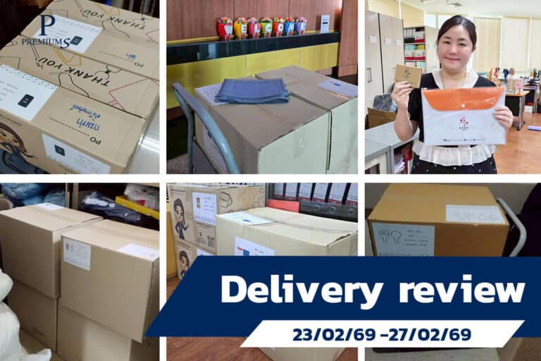 วันนี้มีการจัดส่งสินค้าพรีเมี่ยมให้แก่ลูกค้าหลายรายการ เริ่มจากสั่งทำหมวกแก๊ปสั่งผลิตโลโก้ 12 ชิ้น อุปกรณ์ทำหมวกแก๊ปบัคเคิล 12 ชิ้น แก้วเซรามิค 8 ใบ ที่ส่งให้โรงงานโลโก้ ต่อด้วยการจัดส่งกระเป๋าหูรูดสั่งผลิตทำโลโก้จำนวน 200 ใบไปยังโรงงานสกรีน และปิดท้ายด้วยการส่งมอบสินค้าที่ออฟฟิศ ได้แก่ แก้วเซรามิค 8 ใบ เพื่อเตรียมพร้อมนำส่งถึงมือลูกค้า