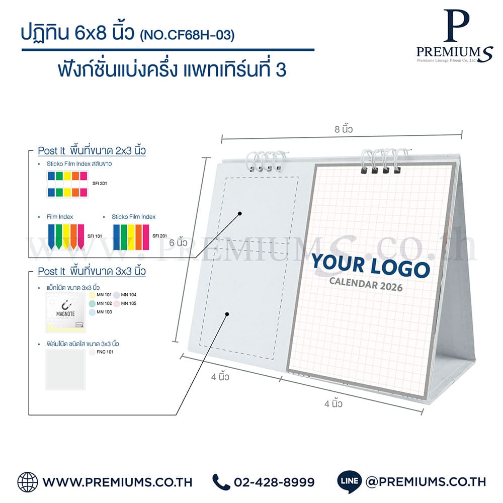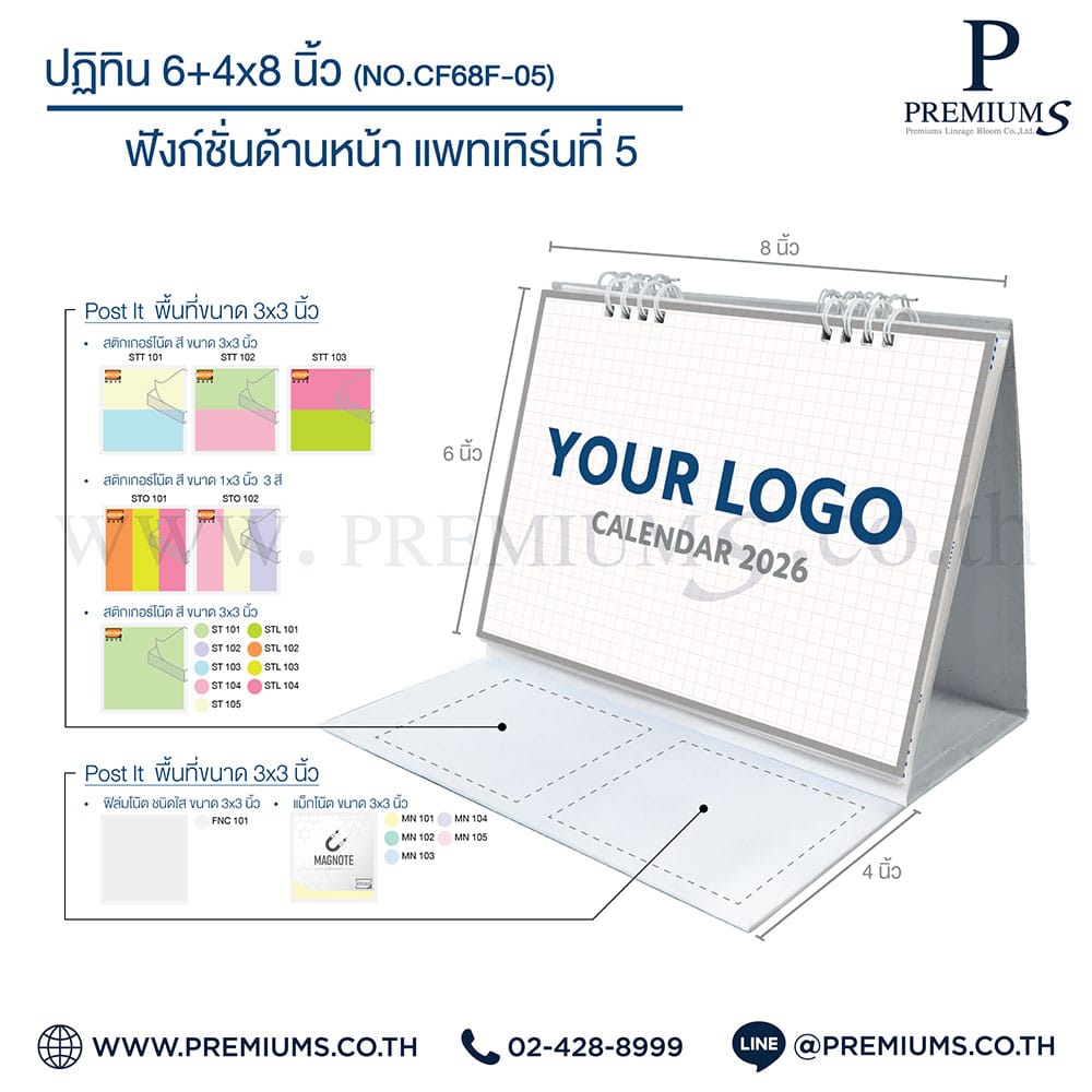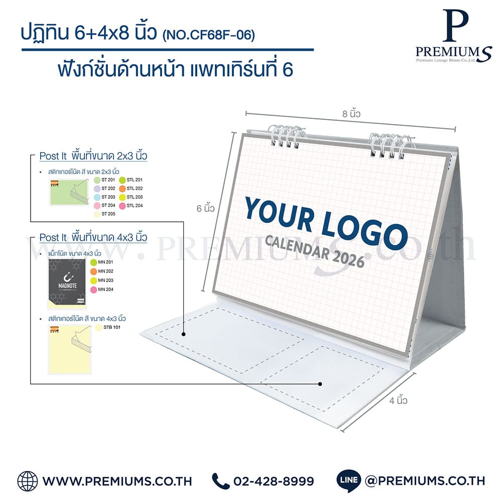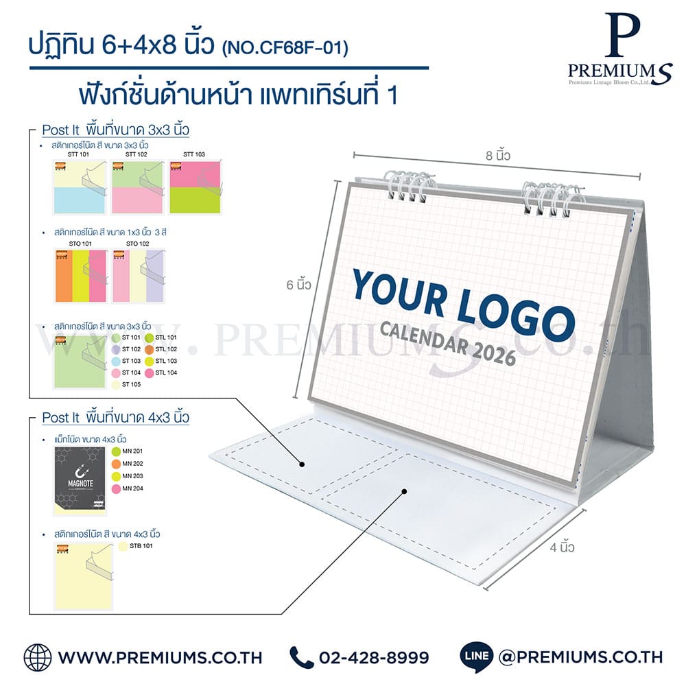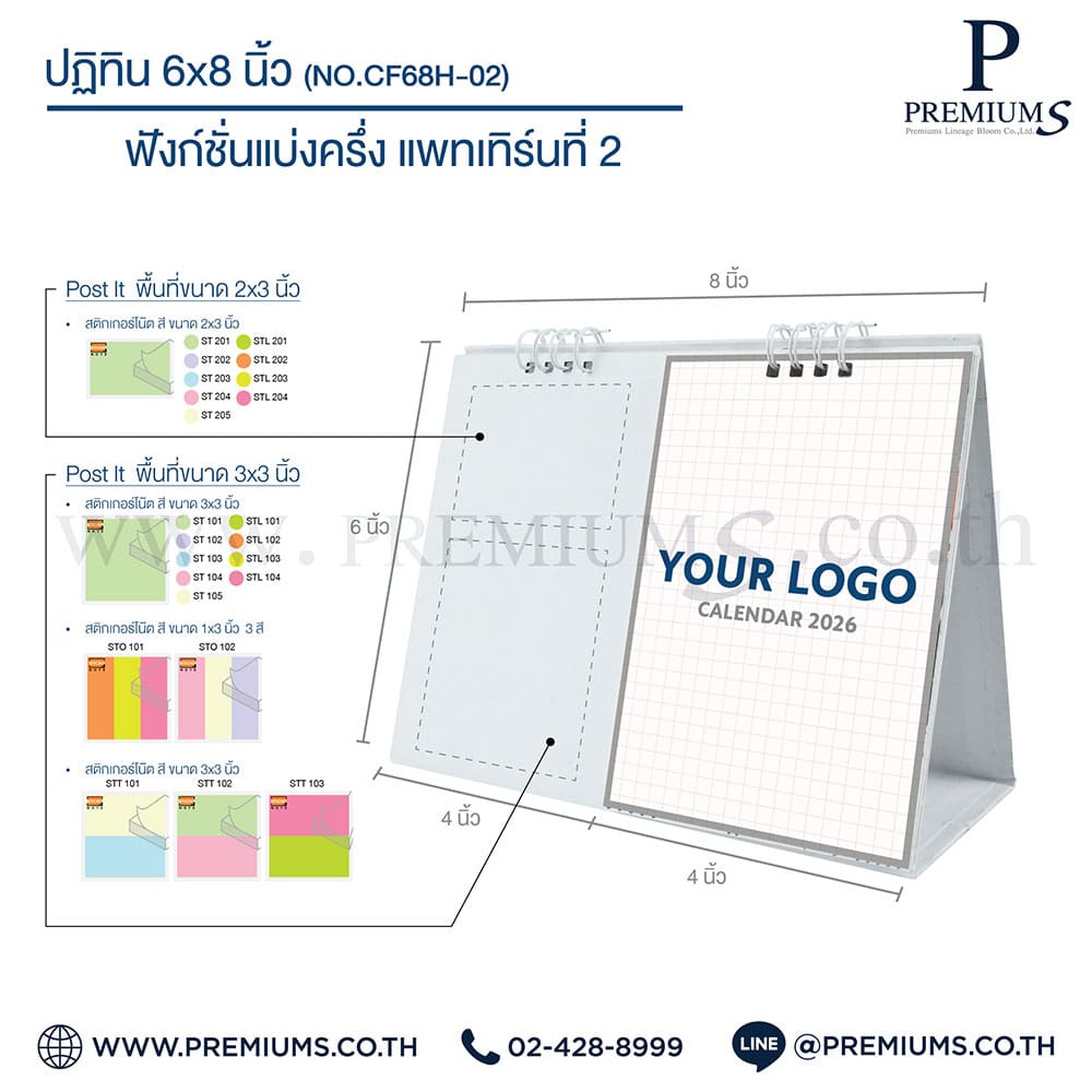 ปฏิทินตั้งโต๊ะ พร้อมกระดาษโพสต์อิท “ขนาด 6×8 นิ้ว”