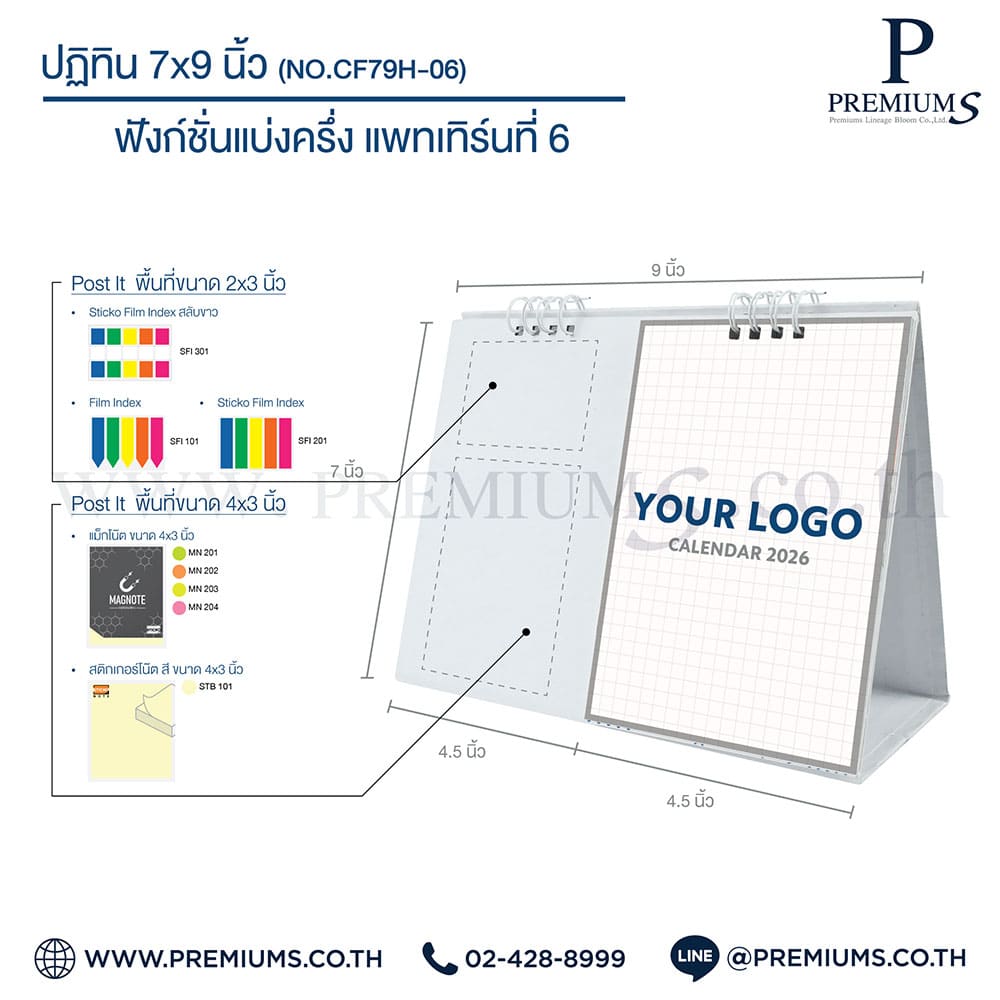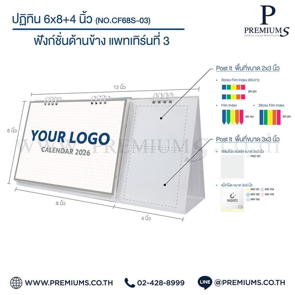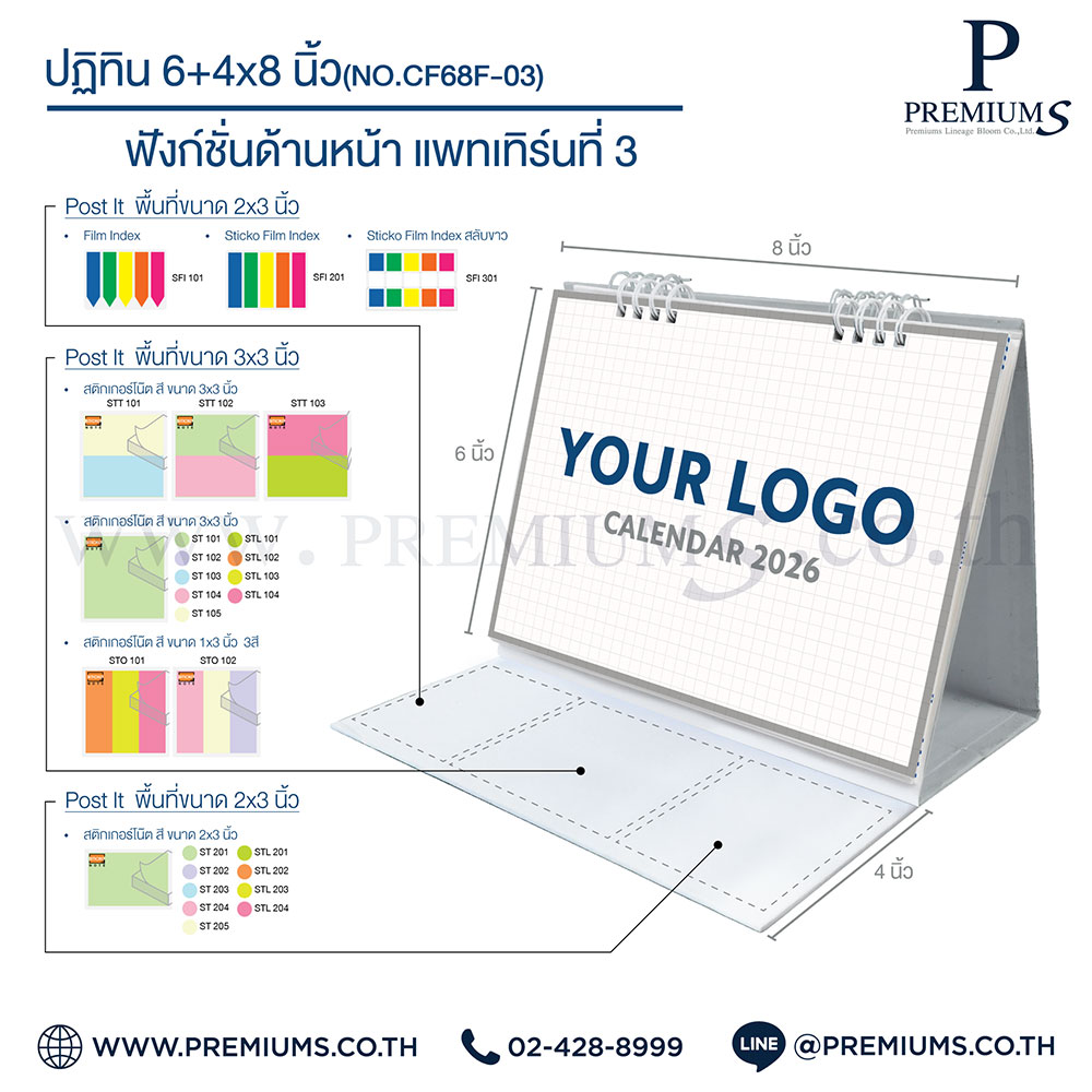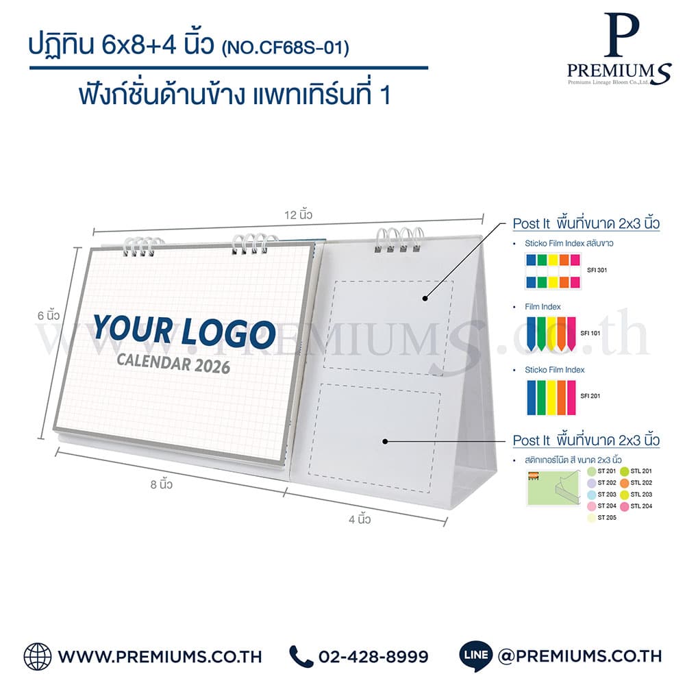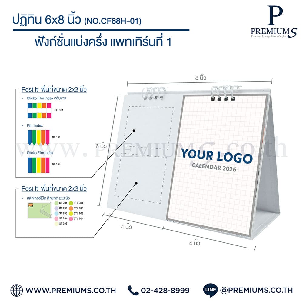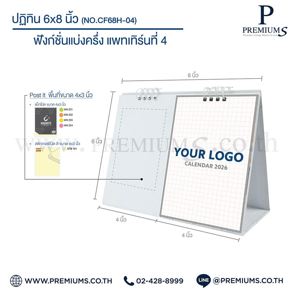 ปฏิทินตั้งโต๊ะ พร้อมกระดาษโพสต์อิท “ขนาด 6×8 นิ้ว”
