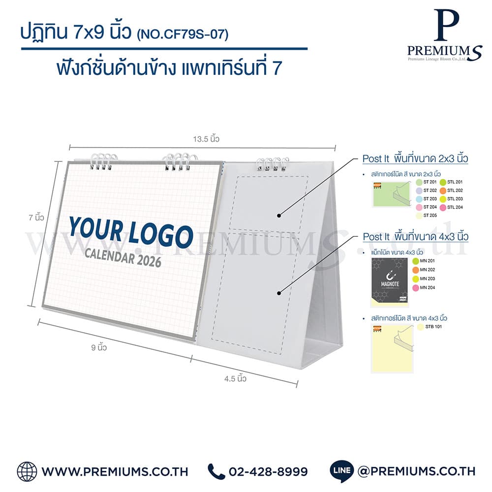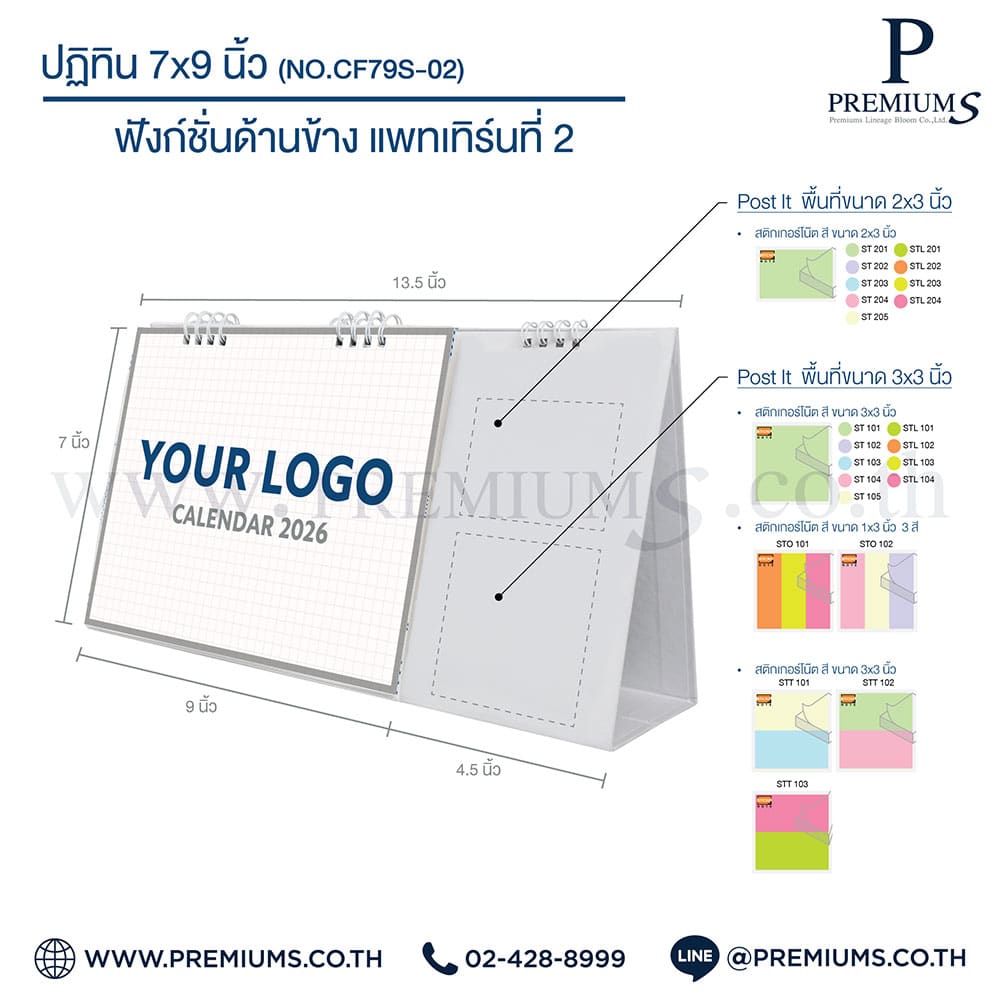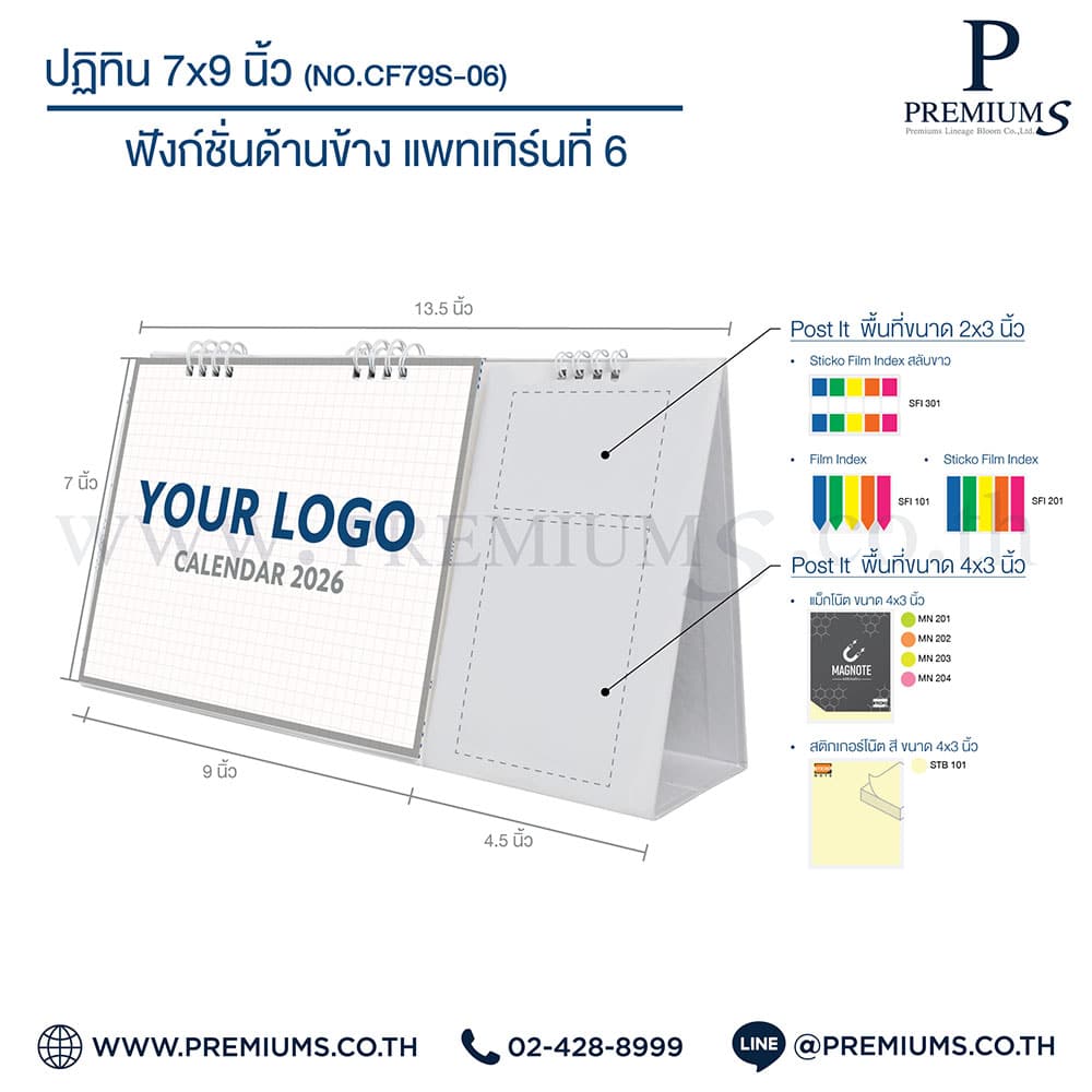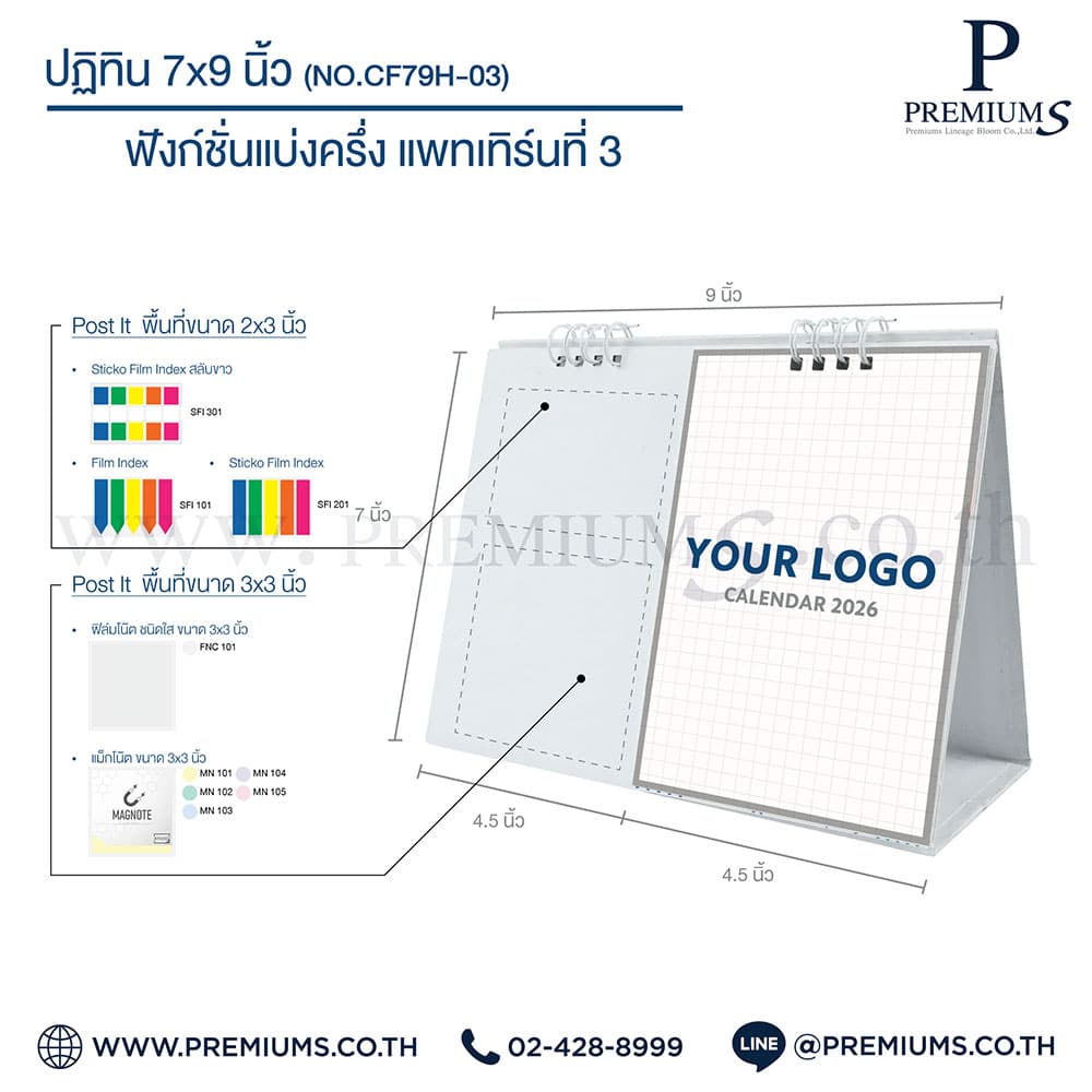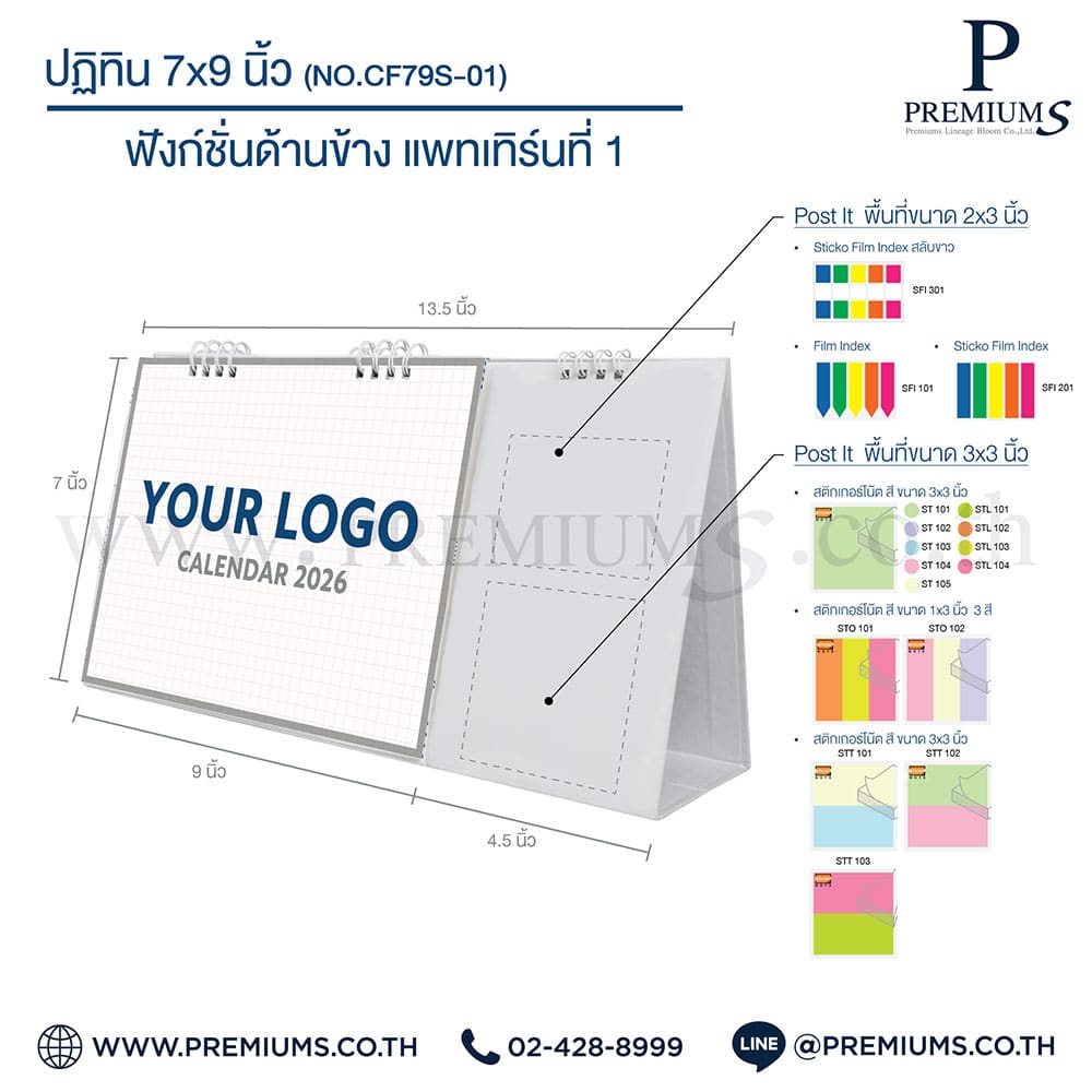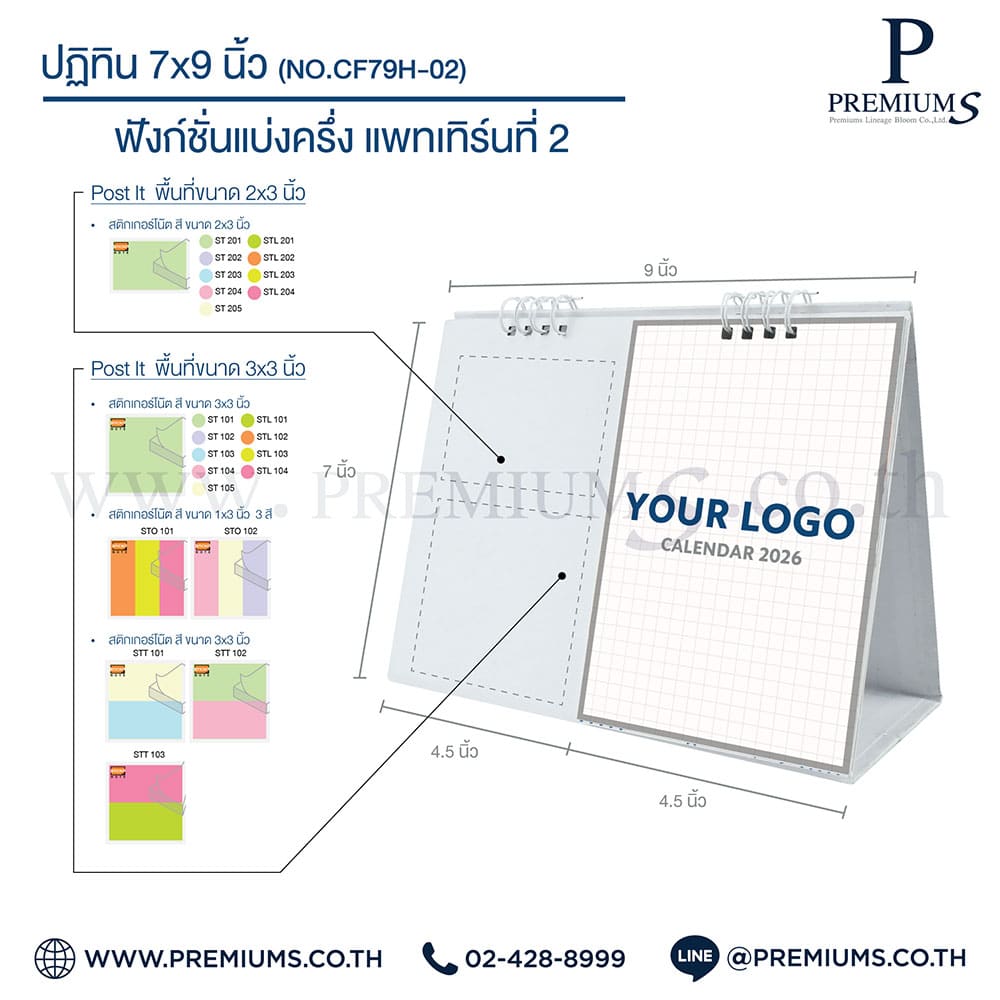 ปฏิทินตั้งโต๊ะ พร้อมกระดาษโพสต์อิท “ขนาด 7×9 นิ้ว”