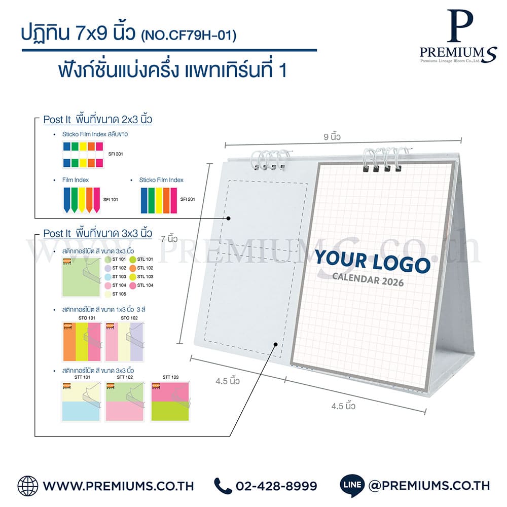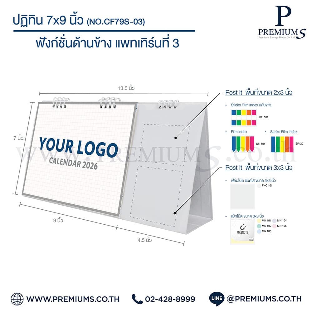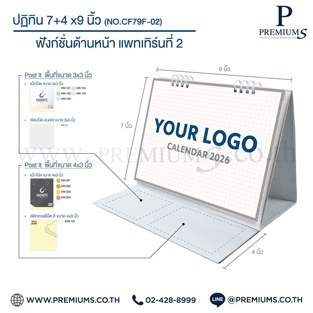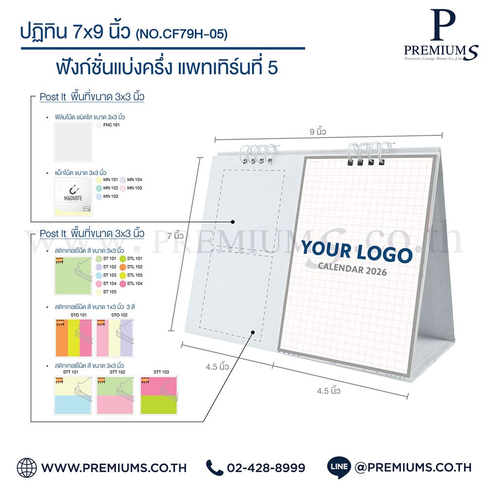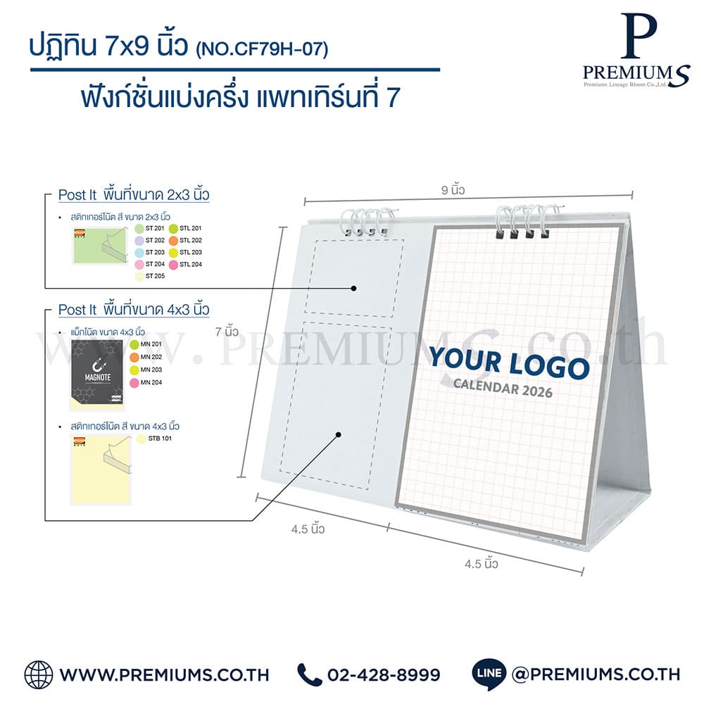 ปฏิทินตั้งโต๊ะ พร้อมกระดาษโพสต์อิท “ขนาด 7×9 นิ้ว”