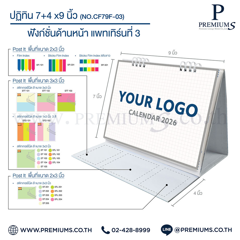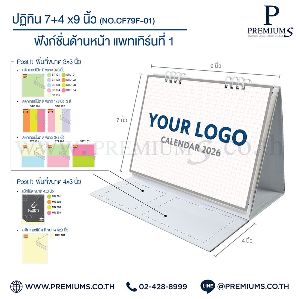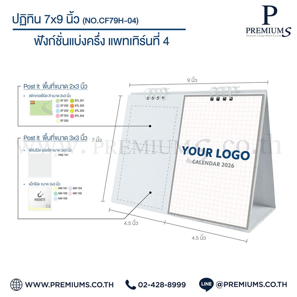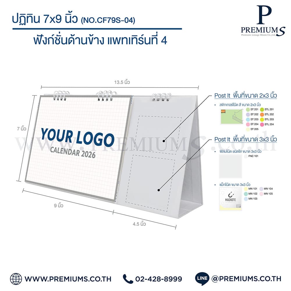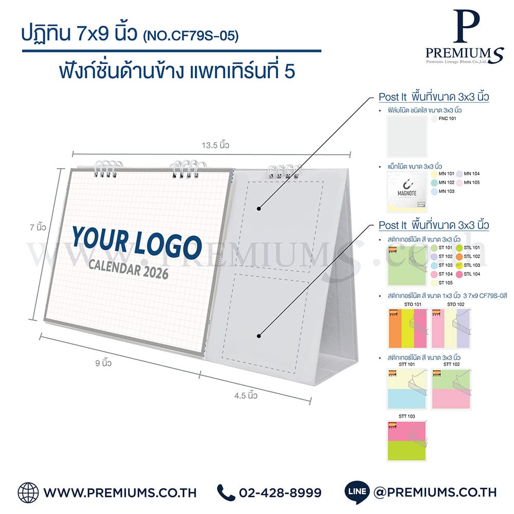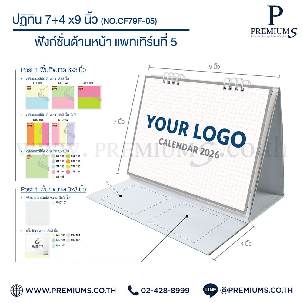 ปฏิทินตั้งโต๊ะ พร้อมกระดาษโพสต์อิท “ขนาด 7×9 นิ้ว”